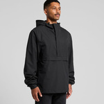 • Pullover hooded windbreaker, seam sealed, dome closure at CF and YKK zip, internal cinch cord at hood, 1 pouch pocket and 2 side pockets w/ welt covers, adjustable elastic drawcord at hem, water resistant, Floating lining to assist with branding